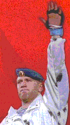 пристальным взглядом. Он по старой традиции выходит на бой в форме десантника,