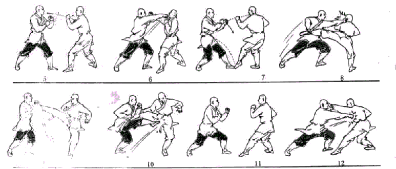 я шагаю вперед в левую гунбу, готовясь к защите (рис. 11). Когда противник бьет